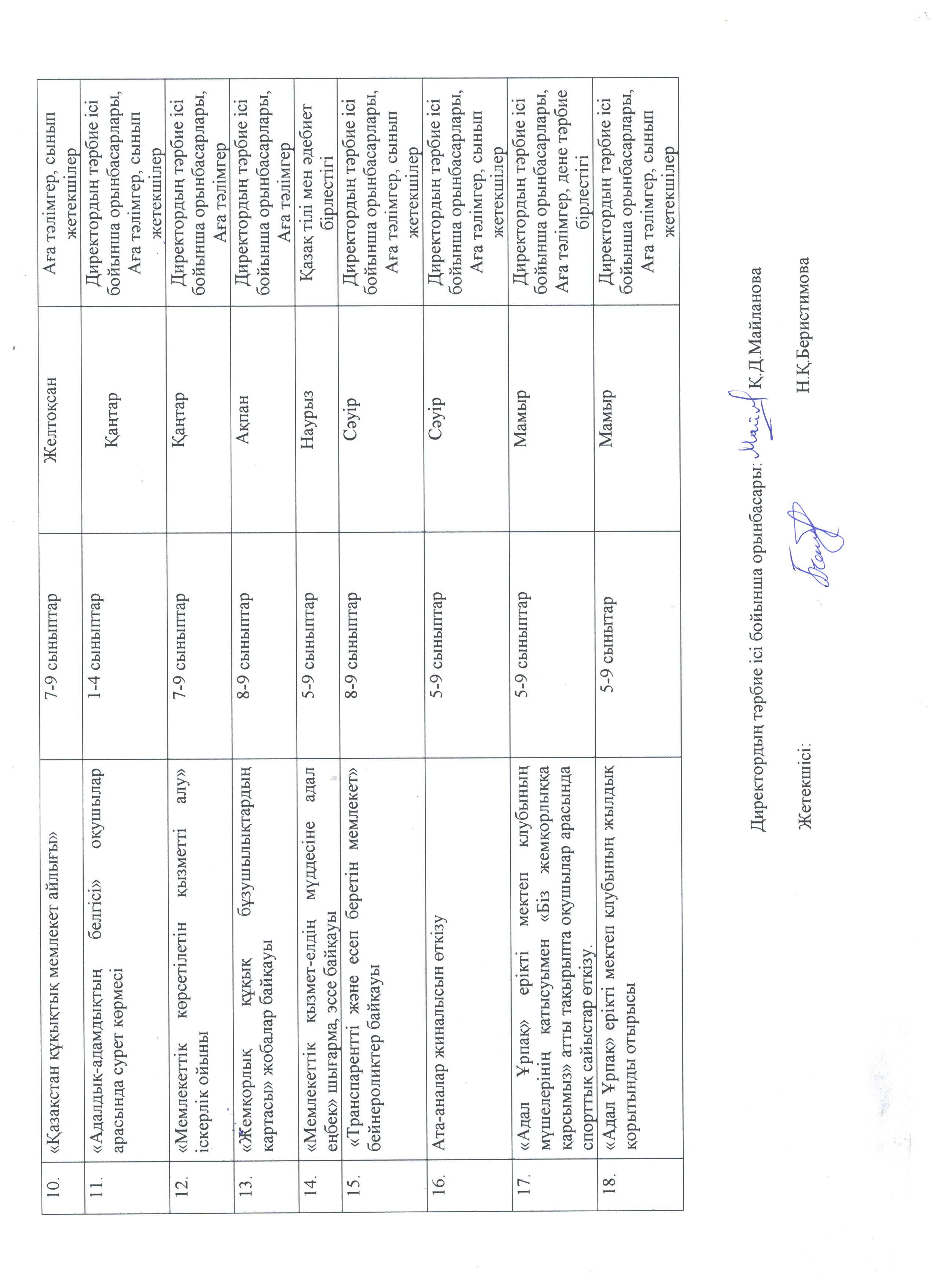 Мектепте сыбайлас жемқорлыққа қарсы көзқарасты нығайту бойынша бастамаларды көтермелеу, сыбайлас жемқорлыққа қарсы сипаттағы 5-9 сынып оқушылары арасынан 100 оқушыдан тұратын «Адал Ұрпақ» ерікті мектеп клубы құрылды.