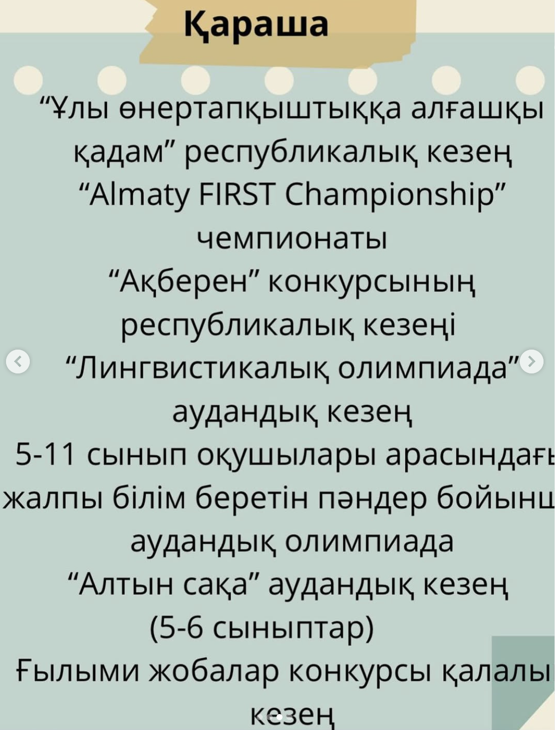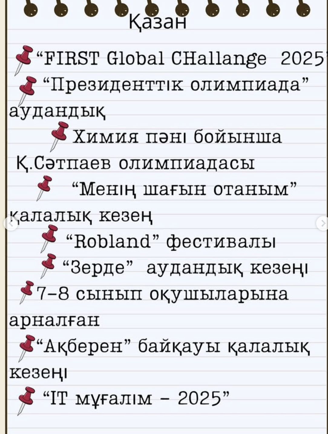 2025-2026 оқу жылында Алматы қаласы Дарын орталығының ұйымдастыруымен өткізілетін іс-шаралар тізімі