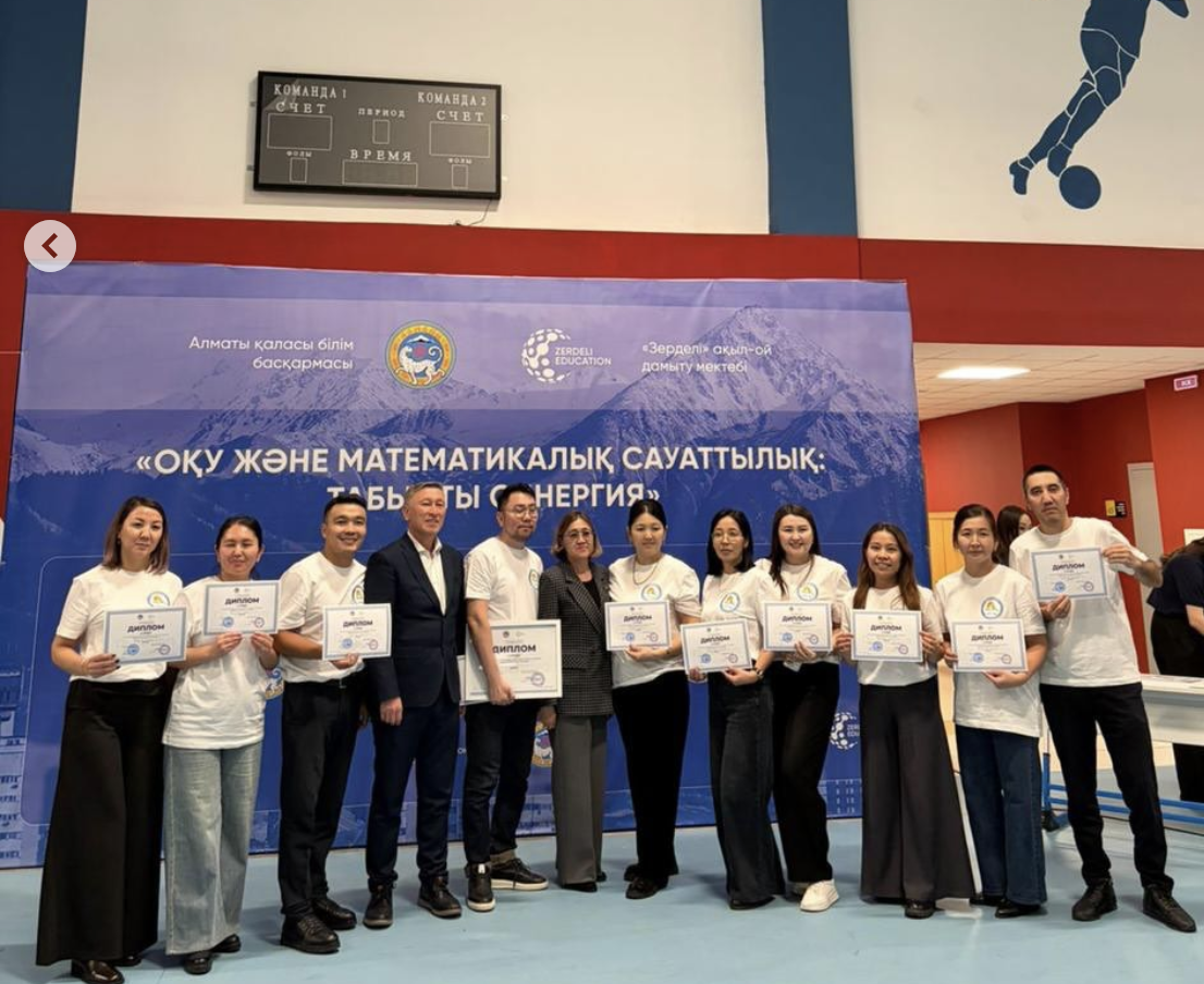 Республикалық «Ой-Сандық» байқауының қалалық кезеңінде «Оқу және математикалық сауаттылық: табысты синергия» тақырыбындағы командалық сайыста мектебіміздің ұстазы Көрегенова Айша Ғалымжанқызы Алатау ауданының намысын қорғады