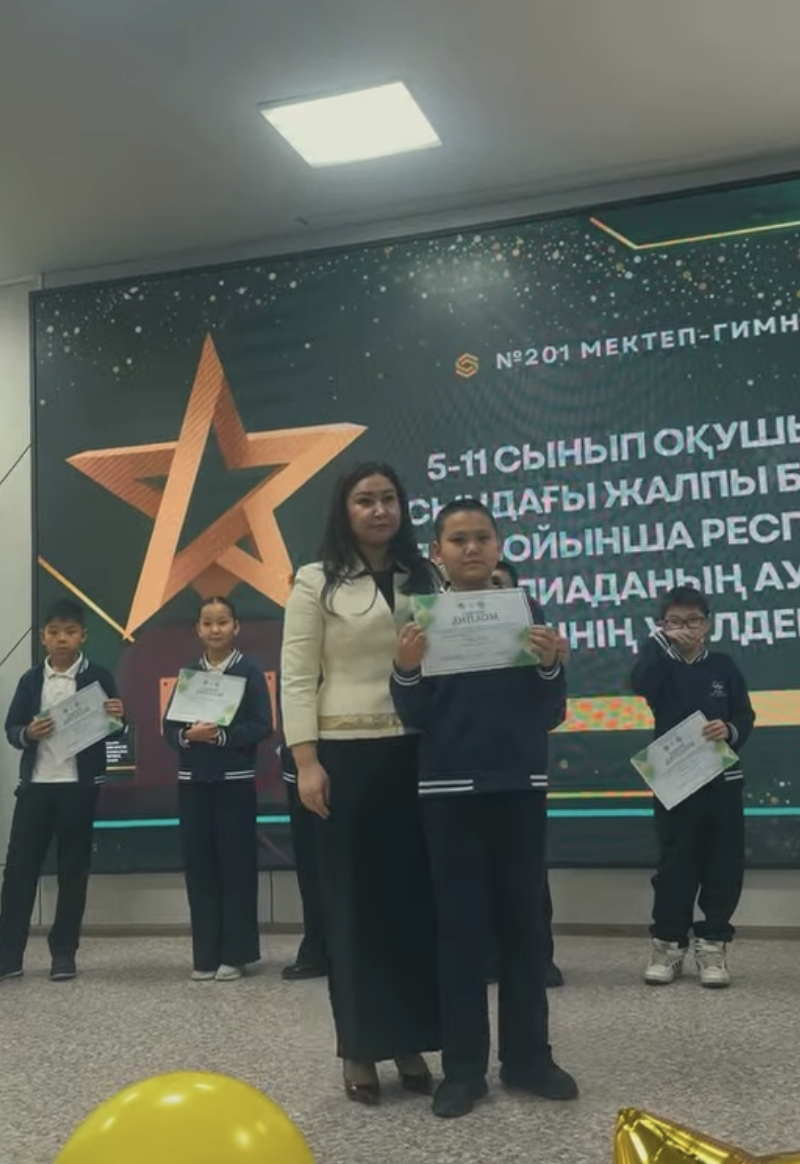 Алматы қаласы Білім басқармасы «Алматы дарын» орталығының ұйымдастыруымен 5-11 сынып оқушылары арлығында жалпы білім беретін пәндер бойынша өткізілген олимпиаданың аудандық кезеңіне 65 оқушы қатысты. Олимпиаданың мақсаты: оқушылардың білім деңгейін арттыру, пәндерге деген қызығушылығын дамыту және дарынды оқушыларды анықтау. Қараша, желтоқсан айларында өткізілген олимпиада өз мәресіне жетіп, жеңімпаздар мен жүлдегерлерге арналған марапптау рәсімі өтті. Мектеп директоры А.Шамова оқушыларды аудандық білім бөлімі атынан берілген І, ІІ, ІІІ дәрежелі дипломдармен марапаттап, қалалық кезеңге өткендерге сәттілік тіледі.