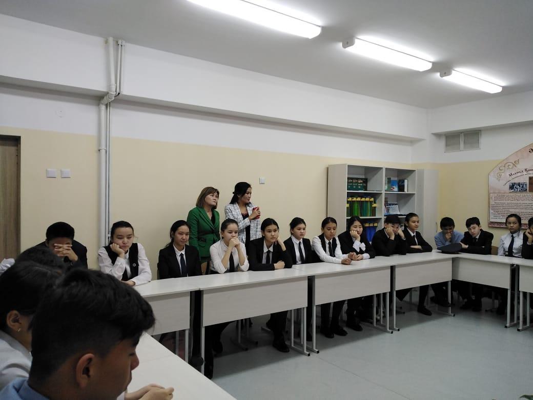 2020 jyldyń 21 qańtar kúnі mektep-gımnazııada «Qylmystyq quqyqbuzýshylyqtyń aldyn alý» atty taqyrypta 9 synyp oqýshylary arasynda dóńgelek ústel ótkіzіldі. Bul dóńgelek ústel ótkіzýdegі maqsatymyz jasóspіrіmder arasynda quqyqbuzýshylyqqa jol bermeý. Is-sharaǵa Alataý aýdandyq IIB Iývenaldy polıtsııa bólіmіnіń aǵa leıtanaty A.B.Bapanov, DTIJO Q.D.Maılanova, synyp jetekshіler D.A.Baktybaeva, N.K.Berıstemova qatysty.