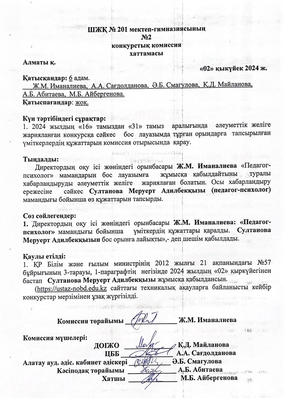 «Адал Ұрпақ» ерікті мектеп клубы отырысың хаттамасы