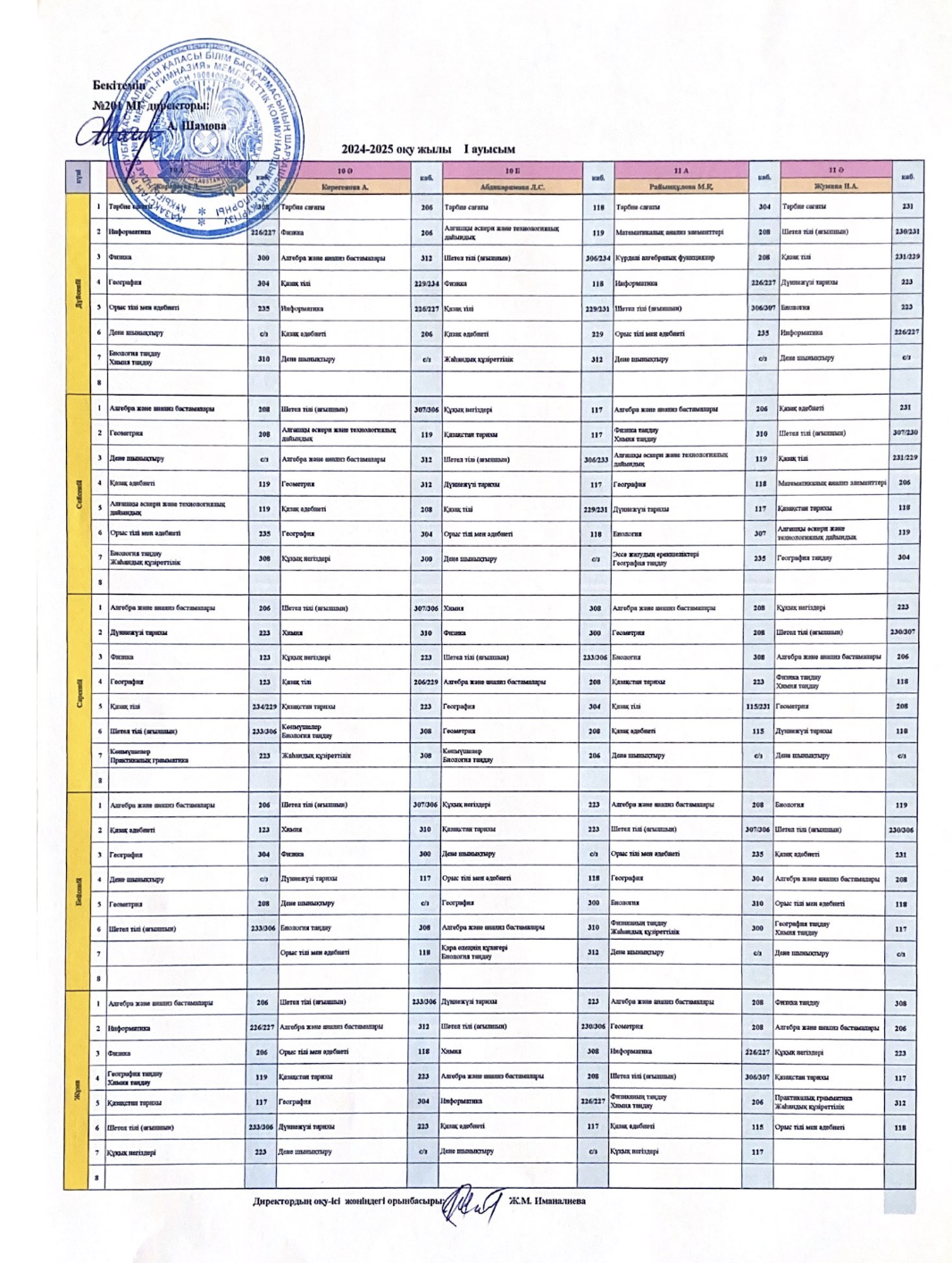 2024-2025 оқу жылының 1-ауысым сабақ кестесі