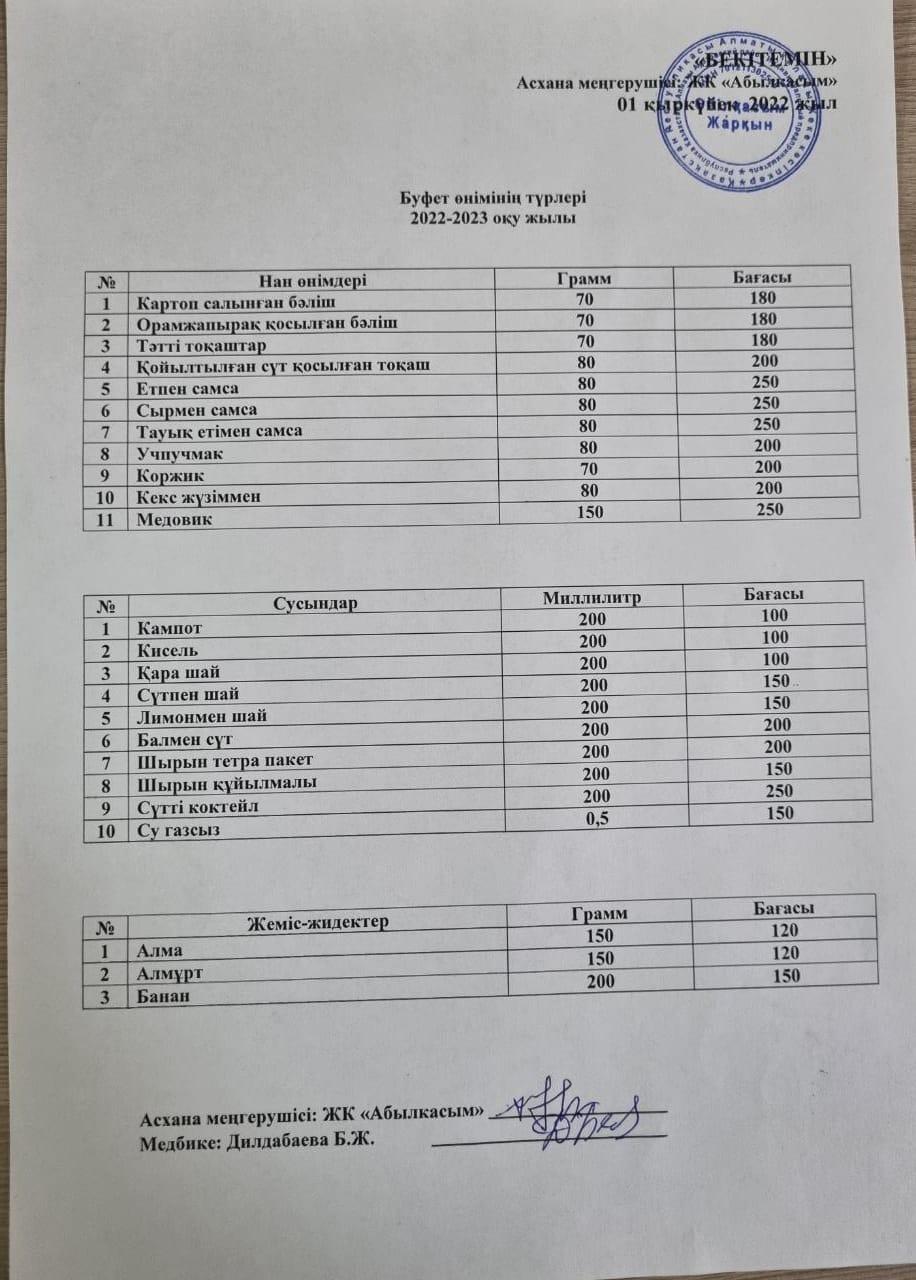 » » 2022-2023 оқу жылындағы "Жалпыға бірдей міндетті оқу қоры" есебінен тегін тамақтанатын оқушыларға арналған Ас мәзірі