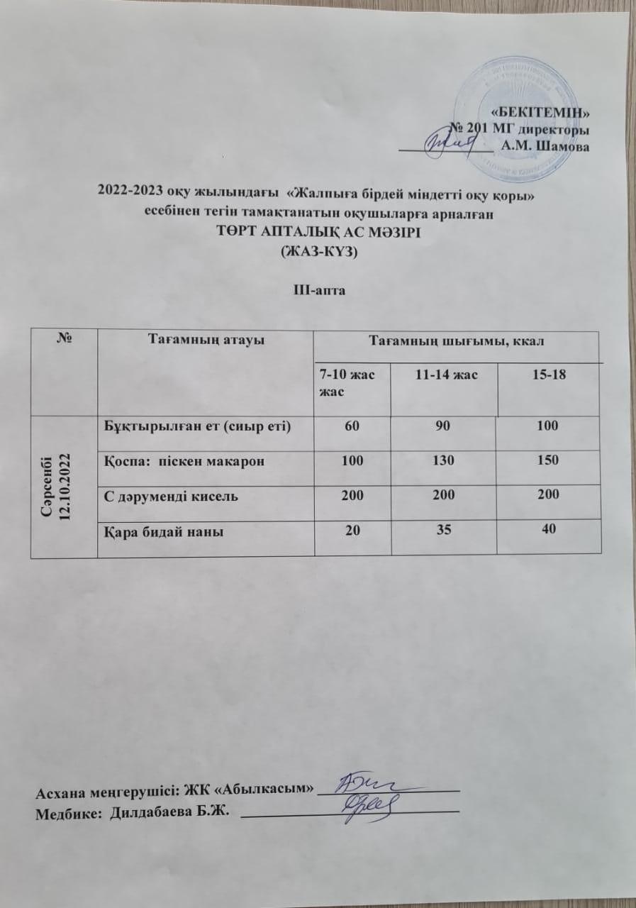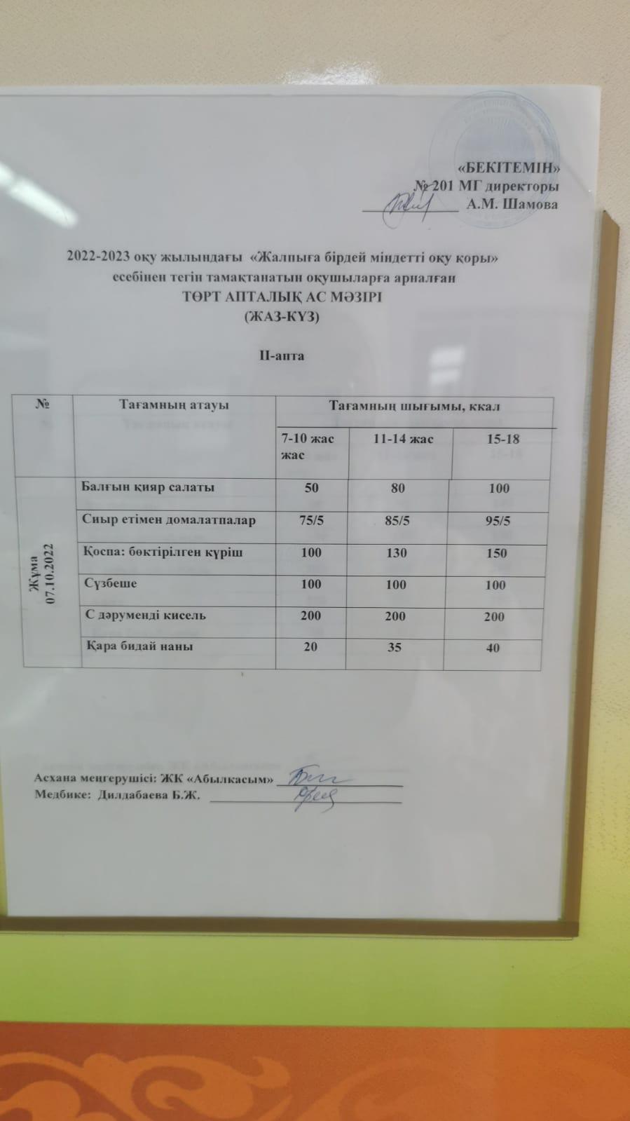 05 сентябрь 2022 0 1 2 3 4 5 2022-2023 оқу жылындағы "Жалпыға бірдей міндетті оқу қоры" есебінен тегін тамақтанатын оқушыларға арналған Ас мәзірі