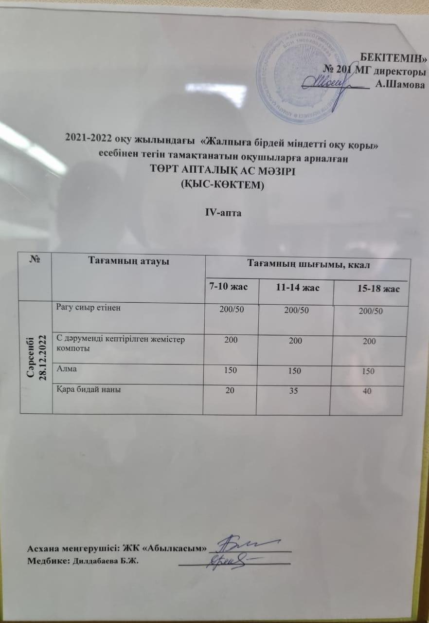 28 декабрь 2022 0 1 2 3 4 5 2022-2023 оқу жылындағы "Жалпыға бірдей міндетті оқу қоры" есебінен тегін тамақтанатын оқушыларға арналған ТӨРТ АПТАЛЫҚ АС МӘЗІРІ