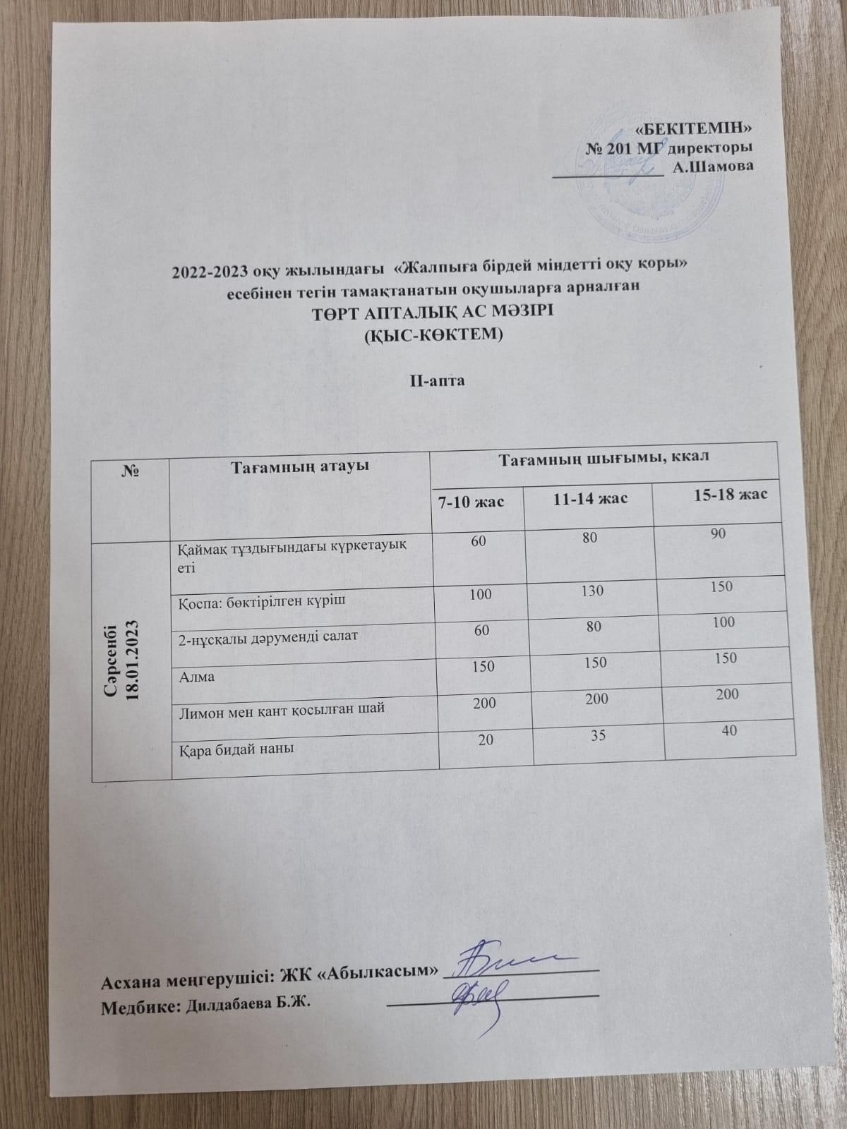 2022-2023 оқу жылындағы "Жалпыға бірдей міндетті оқу қоры" есебінен тегін тамақтанатын оқушыларға арналған Төрт апталық Ас мәзірі