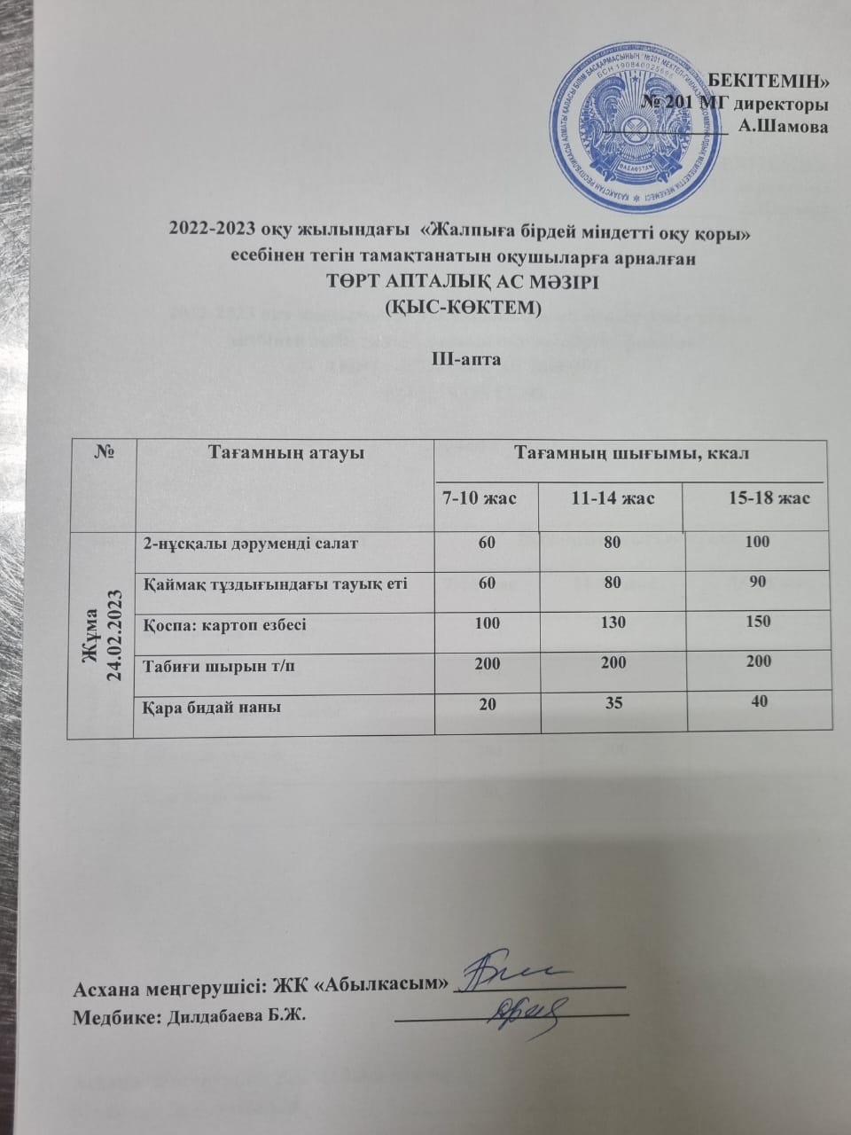 2022-2023 оқу жылындағы "Жалпыға бірдей міндетті оқу қоры" есебінен тегін тамақтанатын оқушыларға арналған ТӨРТ АПТАЛЫҚ АС МӘЗІРІ