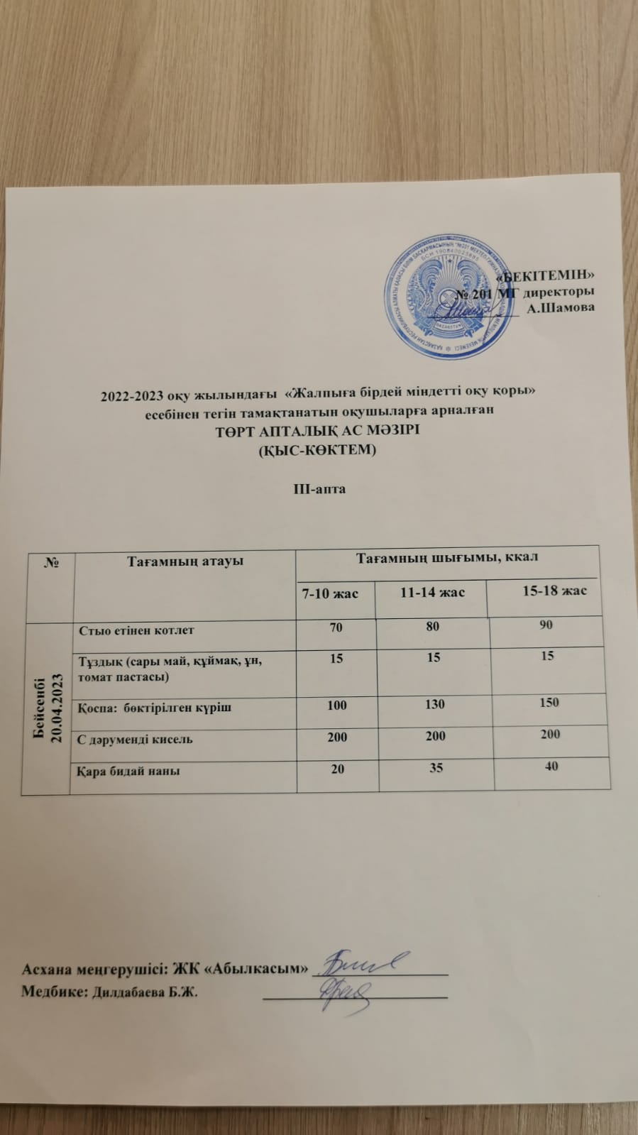 2022-2023 оқу жылындағы "Жалпыға бірдей міндетті оқу қоры" есебінен тегін тамақтанатын оқушыларға арналған ТӨРТ АПТАЛЫҚ АС МӘЗІРІ