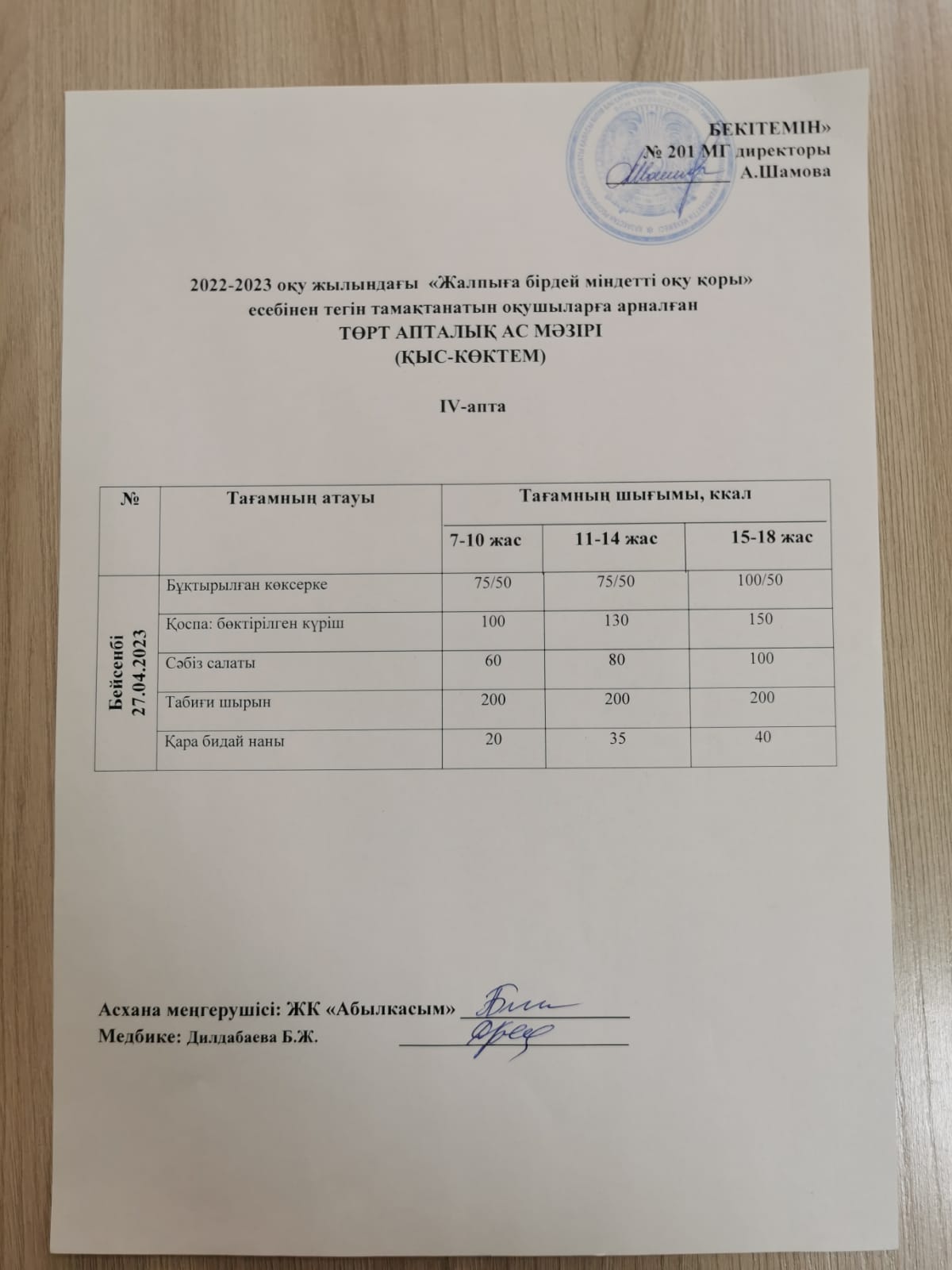 2022-2023 оқу жылындағы "Жалпыға бірдей міндетті оқу қоры" есебінен тегін тамақтанатын оқушыларға арналған ТӨРТ АПТАЛЫҚ АС МӘЗІРІ